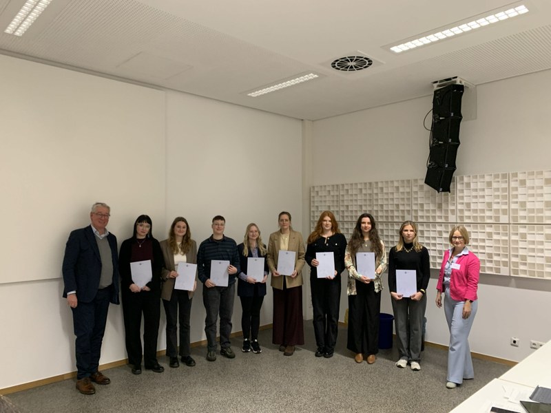 Ein weiterer Höhepunkt des Abends war die Zeugnisverleihung an die diesjährigen Absolvent:innen des Masterstudiengangs „Internationale Strafjustiz“ durch Prof. Dr. Stefanie Bock und Prof. Dr. Eckart Conze. Im Anschluss erhielten auch die Absolvent:innen des Trial Monitoring Programmes ihre Zertifikate für den erfolgreichen Abschluss.