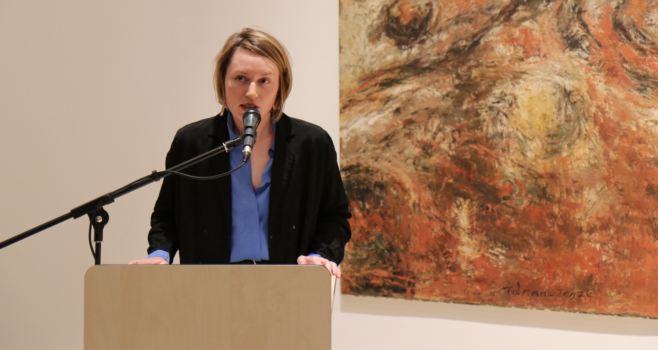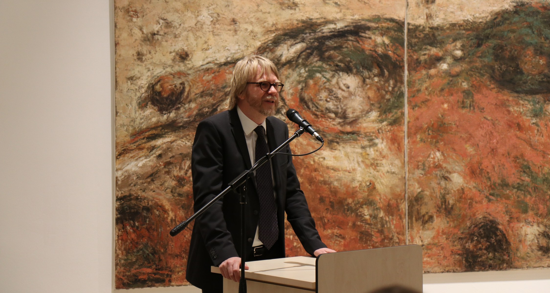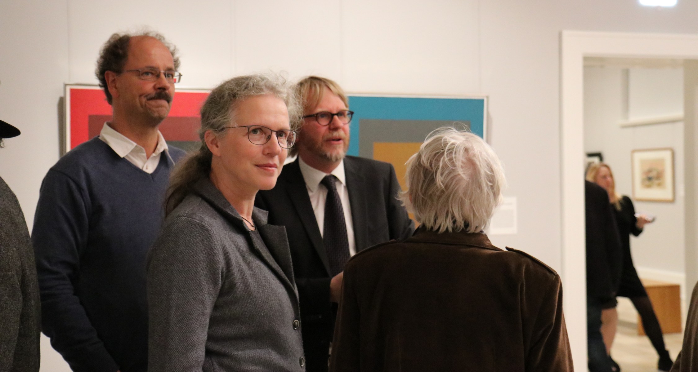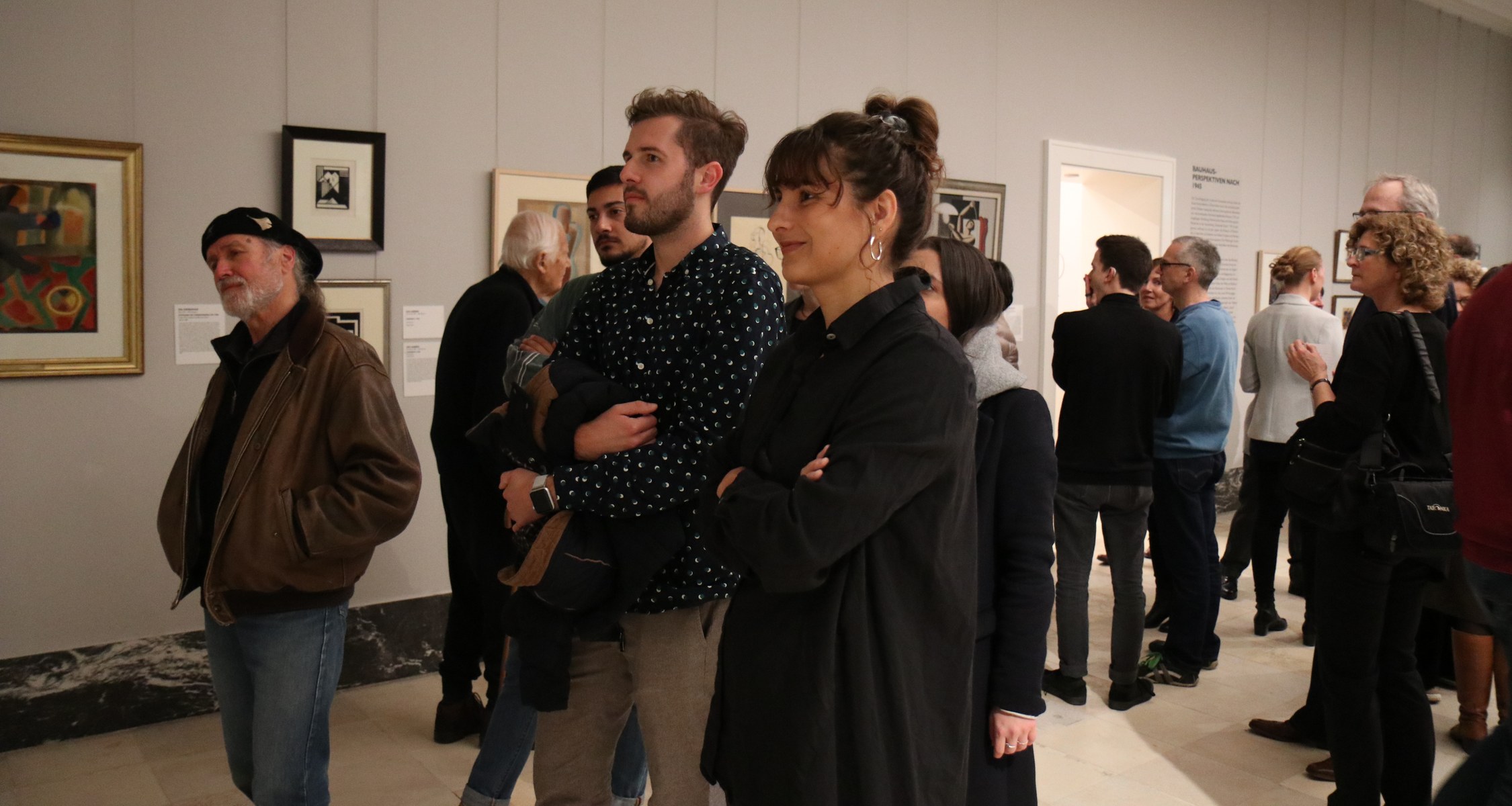 Eröffnet wurde die Ausstellung am Donnerstag, den 31. Oktober, von Museumsdirektor Dr. Christoph Otterbeck und Marija Marchuk M.A., die vor mehr als 140 Besucher/innen einen kurzen Einblick in den umfassenden Themenkomplex des Bauhauses gab und einen Bogen nach Marburg schlug: „Auch das Kunstmuseum Marburg ist ein Kind der Weimarer Republik und der unterschiedlichen Tendenzen der Moderne. Das Bauhausjubiläum war also auch für das Museum Anlass gebend, die eigene Sammlung durchzusehen, denn die Präsentation von Gegenwartskunst gehörte seit der Museumsgründung im Jahr 1927 zur Identität des Hauses.“.