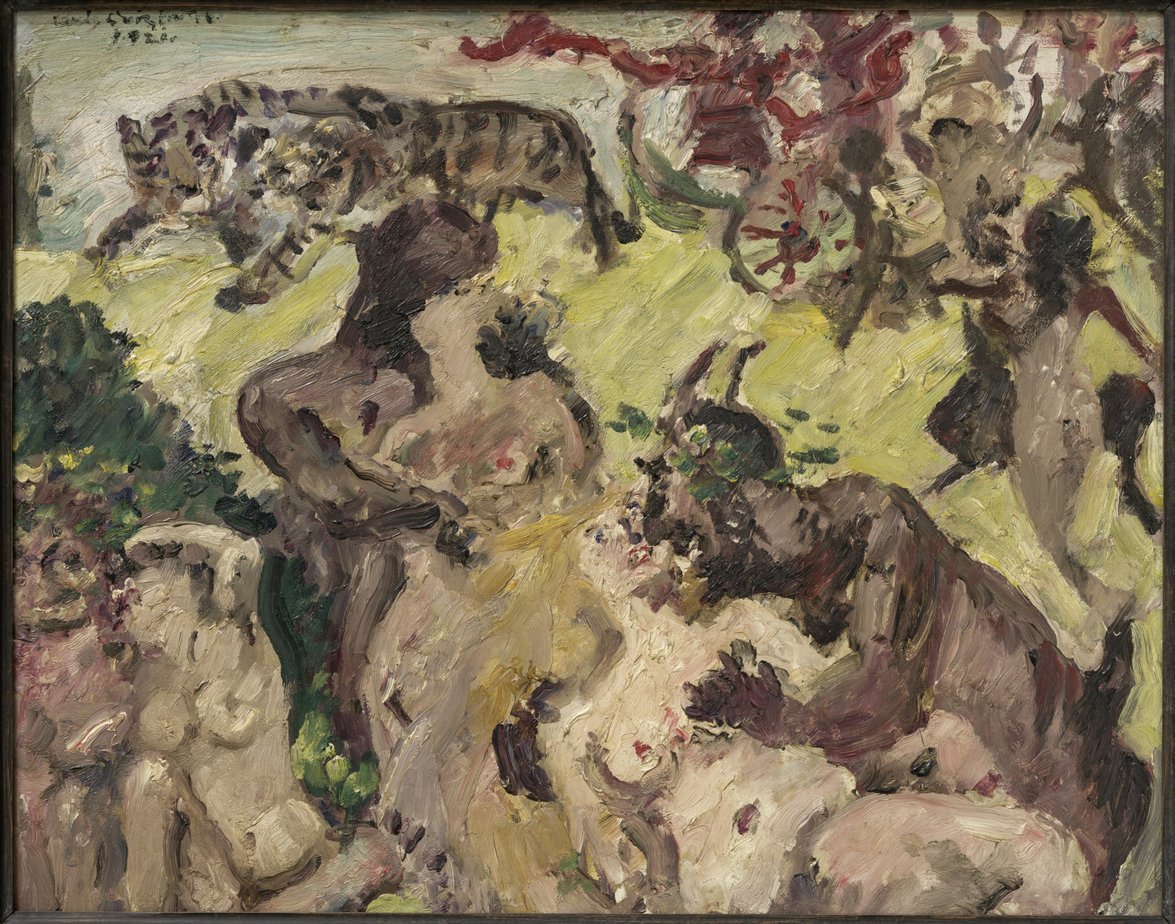 Bacchanal, das 1996 durch Spenden erworben werden konnte, ist Zeugnis eines Malers, der auch in seinem Spätwerk noch voller Schaffensdrang war und Werke von außerordentlicher Kraft und verwirrender Ambiguität hervorgebracht hat. Obgleich im Liebesakt miteinander verbunden, fehlt Corinths nackten Körpern die Anmut und erhabene Formvollendung der griechischen Figuren. Anstelle eines schönen Scheins schafft der Künstler mit Bacchanal eine Darstellung, die das Animalische der Handlung herausstellt und die antike Götterwelt augenzwinkernd kommentiert.