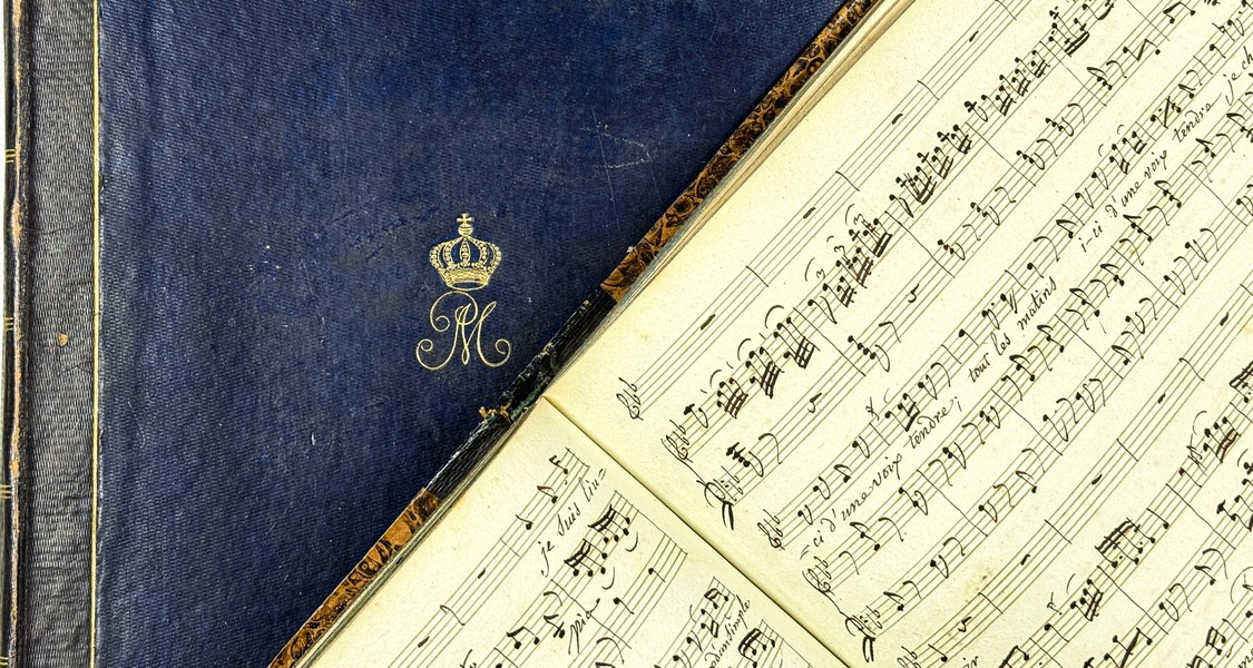 Die verzierten, farbig gestalteten Bände tragen z.T. noch Schrank-Nummern aus ihrer ursprünglichen Aufstellung. In der Sammlung finden sich „klassische“ Werke - zeitgenössischen Klavierauszüge von Opern des späten 18. und der ersten Hälfte des 19. Jahrhunderts, Einzelarien und Lieder-, aber auch Stücke niederländischer Herkunft mit Bezug auf das Herrscherhaus sowie Stücke aus ihrer Zeit am preußischen Hof.