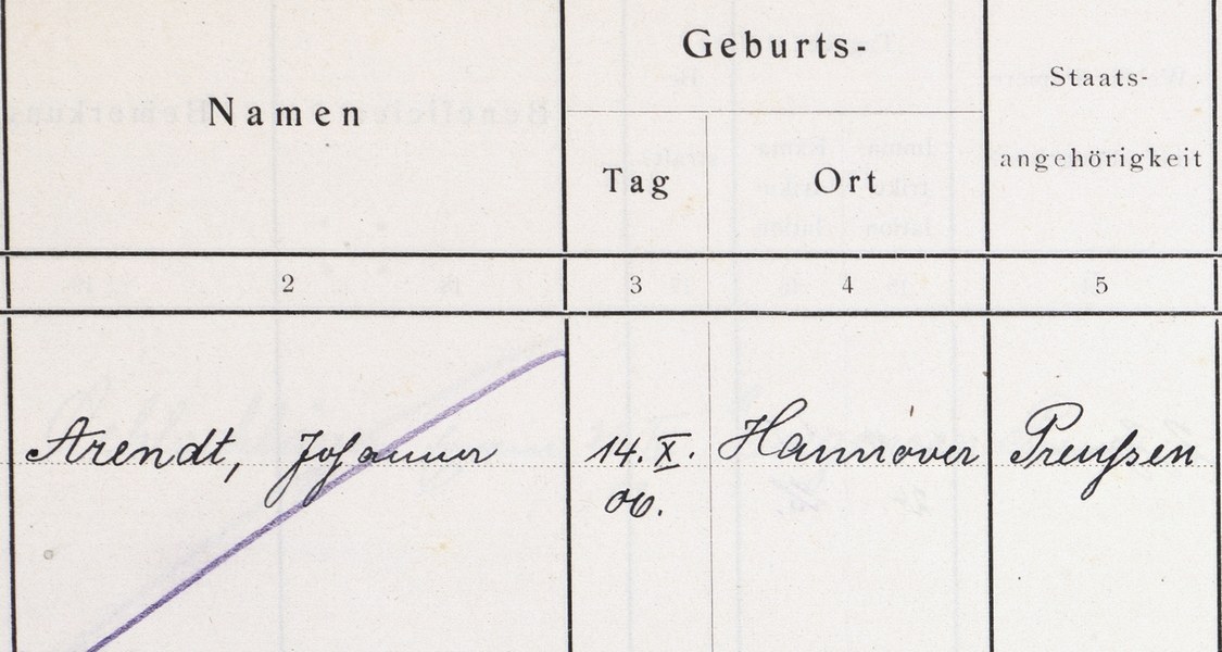 Am 14. Oktober 1906 wurde in Linden bei Hannover Johanna Arendt geboren und wuchs in Königsberg auf. Nach dem frühen Tod ihres Vaters lernte sie durch ihre Großeltern das liberale Reformjudentum kennen. 1924 erlangte sie als externer Prüfling das Abitur. Schon während ihrer Schulzeit hatte sie Kant gelesen und einen philosophischen Kreis gegründet.