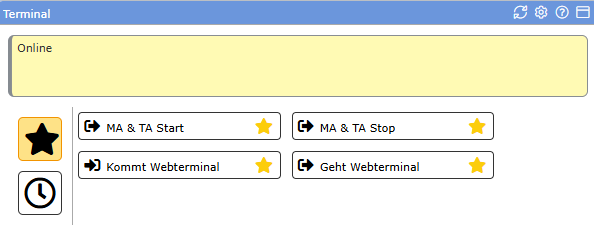 Für die Arbeit an der Dienststelle in Bereichen, in denen kein Zeiterfassungsterminal zur Verfügung steht betätigen Sie bitte die beiden dafür vorgesehenen Buttons "Kommt Webterminal" und "Geht Webterminal".