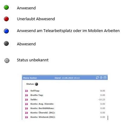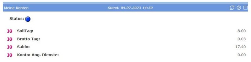 Die Sitzungszeit im Portal wird Ihnen am unteren linken Bildschirmrand eingeblendet. Sie hat keine Bedeutung für die Zeiterfassung.