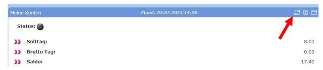 im Widget "Meine Konten" den Aktualisierungsbutton klicken.