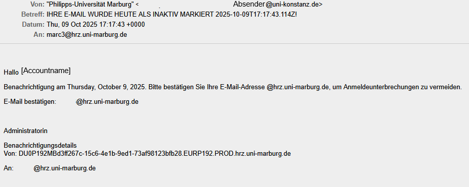 22.10.2025 Warnung vor erneuten Phishing-Mails von Accounts der Universität Konstanz