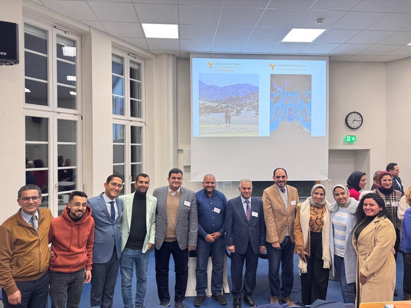 On Friday, the program expanded to cultural heritage in modern Alexandria, material exchange between Egypt, the Levant, and Cyprus, and archaeological studies on bronze statues and Phoenician archaeology. The day ended with a visit to the archaeological collection and a reception at the Archaeological Institute, followed by closing remarks from the participants.
