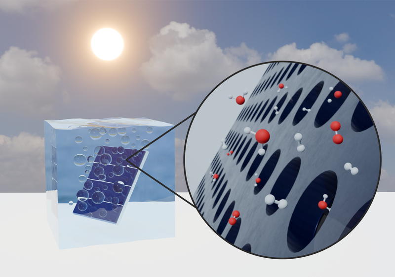 Another approach to producing green hydrogen is direct water splitting using solar cells. For this purpose, so-called tandem solar cells—where two different solar cells are stacked on top of each other—are employed. These absorb different regions of the solar spectrum, increasing the overall voltage of the solar cell to more than 1.7 V, which is required to split water into oxygen and hydrogen. In this area, we aim to correlate degraded performance characteristics of the solar cells with structural defects in order to optimize the materials. As with the fuel cells, the method of momentum-resolved scanning transmission electron microscopy will also be used here to measure electric fields at the pn junctions of the solar cell.