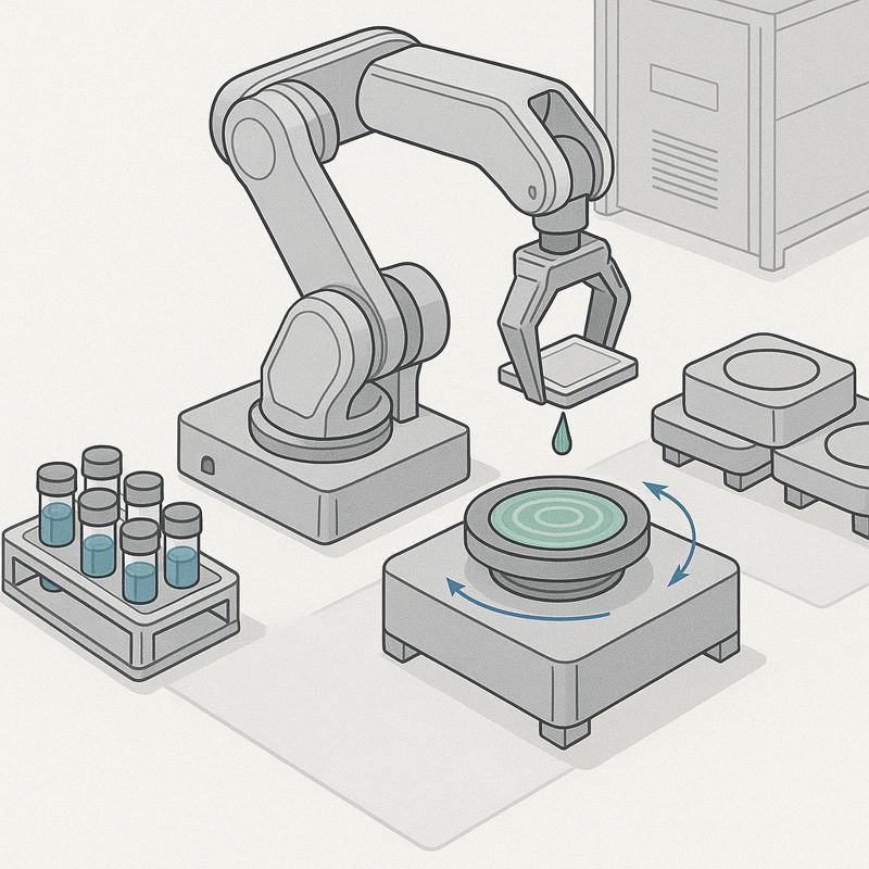 · Program the robotic spin‑coating system to execute controlled variations in deposition parameters.
