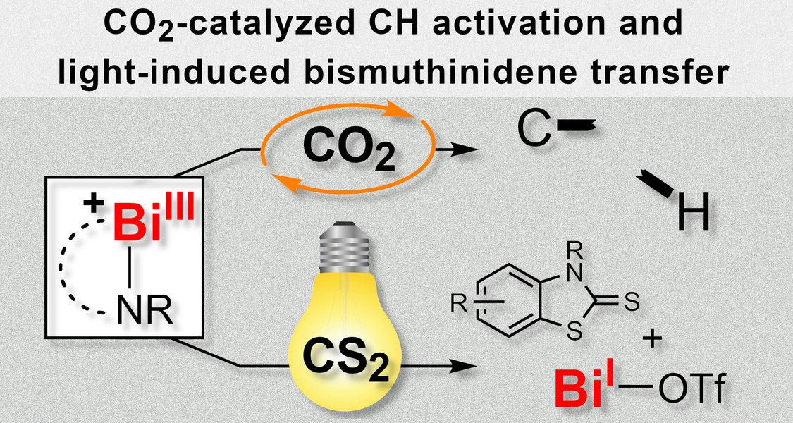 Carbon dioxide and carbon disulfide readily insert into the Bi–N bond of cationic bismuth amides and generate isolable, but metastable products. In the case of carbon dioxide, a (formal) carbon dioxide-catalyzed CH activation can be realized. In the case of carbon disulfide, the first example of a light-induced bismuthinidene transfer reaction was uncovered. These results have just been accepted for publication in Chem. Sci. - congratulations to all co-authors!