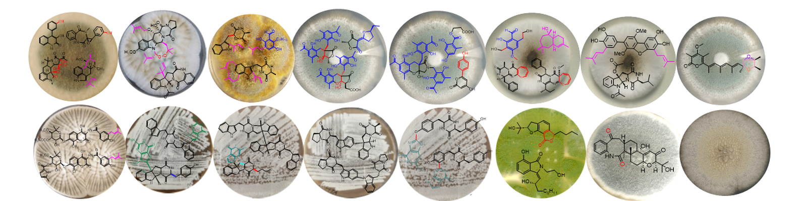 Main focus of our research is the functional genomics of secondary metabolites in microorganisms, especially in fungi of ascomycetes and bacteria of actinomycetes. We investigate the biosynthesis of these compounds using different disciplines such as bioinformatics, chemical, molecular biological and biochemical approaches. The genetic information for the biosynthesis of a compound of interest, usually as gene clusters, will be identified by mining of the microbial genomes. The function of the genes and gene clusters will be proven by deletion in the producers and expression in heterologous hosts as well as by biochemical characterization of overproduced proteins. The obtained genetic information is then used for production of designed compounds by chemoenzymatic synthesis and synthetic biology.