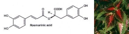 Rosmarinic acid is a common constituent of members of the families Lamiaceae and Boraginaceae, but is also found in other species, e.g. the hornwort Anthoceros and the fern Blechnum. Most probably this ester of caffeic acid and 3.4-dihydroxyphenyllactic acid serves as a constitutively accumulated preformed defense compound for the plant against pathogens and herbivores. Our interest is the elucidation of the enzymology and the regulation on enzyme and gene level of rosmarinic acid formation. This will show us when and where in the plant rosmarinic acid biosynthesis and accumulation is induced. Moreover, the evolutionary relationship of rosmarinic acid biosynthesis in lower and higher plants as well as the development of enzymes of rosmarinic acid biosynthesis from enzymes in primary metabolism are interesting topics. For this purpose, genes involved in rosmarinic acid biosynthesis are cloned from different plants and enzymes are crystallized and their structure elucidated.