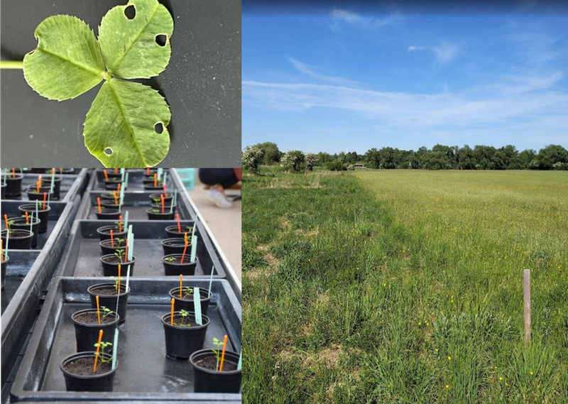 Many nature conservation measures in grasslands involve reduction of mowing intensity. The most extreme case are old grass stripes, when part of meadow is not mown for up to several years, with the aim to support insects and birds. Insects are important herbivores. This thesis will investigate the effect of old grass stripes on herbivory intensity and pathogen infestation. It will place potted Trifolium repens plants in old grass stripe vegetation and assess the herbivore intensity.