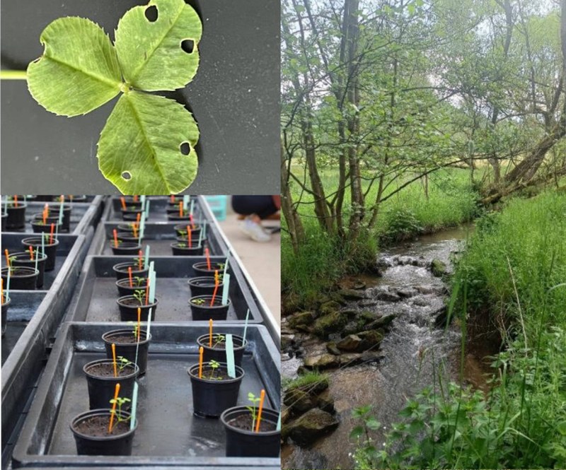 Trifolium repens is an outcrossing plant that depends on insect pollinators to produce seeds. In this thesis, we assess whether restoration of small streams affects pollination success. We use potted Trifolium repens plants (same as in the herbivory experiment) and place them along restored and unrestored stream sections. After the flowering period, we will quantify the seed production as a proxy for pollination success. This will help to understand whether and how restoration influences pollinator activity.