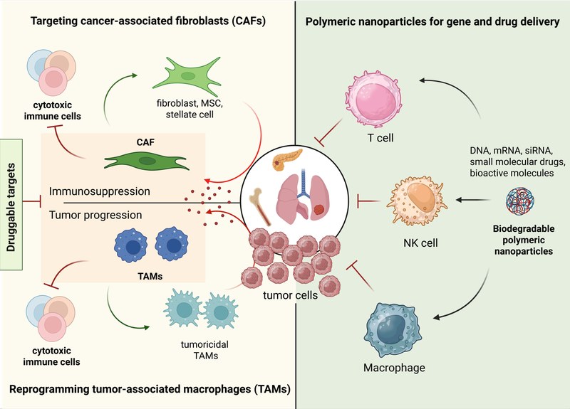 The tumor microenvironment is increasingly recognized as a crucial component of tumorigenesis. The interaction between cancer cells and stromal cells plays a significant role in tumor progression and often determines the response to therapy. Our research aims to understand how the microenvironmental niche drives tumor progression and, more importantly, to identify specific targets that can interact with or inhibit the maintenance and functional competence of the tumor niche. We seek to develop new translational approaches that target different stromal and immune cell populations and their corresponding signaling systems. Our primary focus is on pancreatic cancer, lung cancer, and leukemia. Specifically, we investigate the pathological role of fibroblasts, macrophages, and their cross-talk with cytotoxic immune cells. Our goal is to identify novel molecular targets within the tumor microenvironment that may facilitate the development of effective anti-cancer therapies. Additionally, we employ nanoparticle-mediated methodology to deliver bioactive molecules such as nucleic acids, small molecular drugs, peptides, etc., into immune cells, aiming to enhance the efficacy of anti-cancer therapy. We combine basic research with translational aspects, analyzing liquid and tumor tissue biopsies, and utilizing mouse models of cancer to gain insights into the complex interplay between cancer cells and the microenvironment.