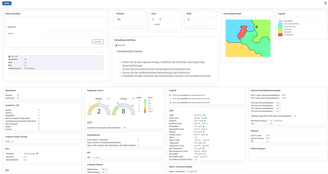 The research project on a Clinical Decision Support System (CDSS) firstly aims at developing a CDSS built on an artificial intelligence-based machine learning approach to guide physicians in their diagnosis an treatment decisions for COPD patients. Secondly, we establish an integrated research platform for personalized medicine that will empower clinical researchers to explore and test new hypotheses and enable analytical experts to deliver developed intelligent applications for validation and translation into clinical practice.