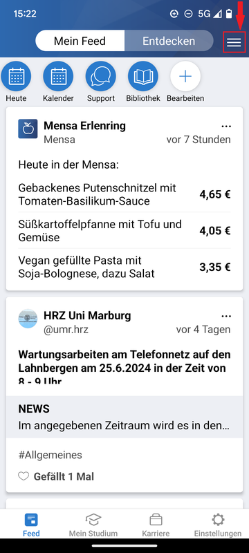 - Click the three white lines of the burger icon in the top bar (Fig. 1).