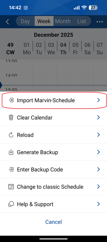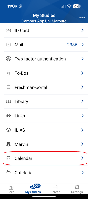 You can integrate the schedule from Marvin into the calendar of the Uni Marburg-App.