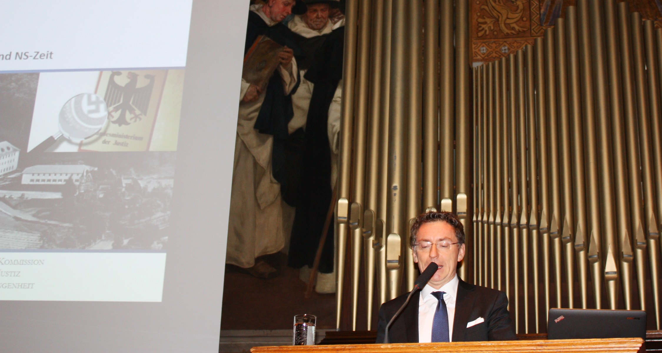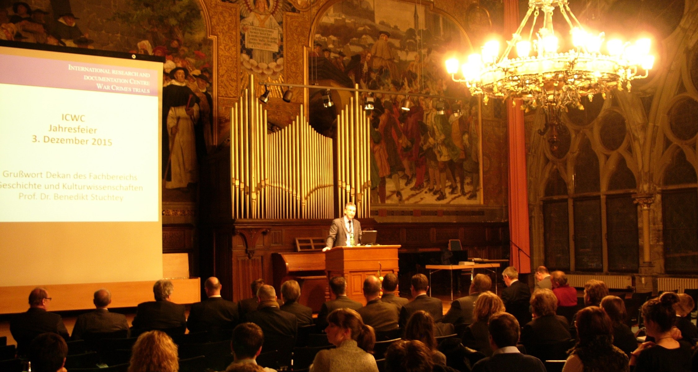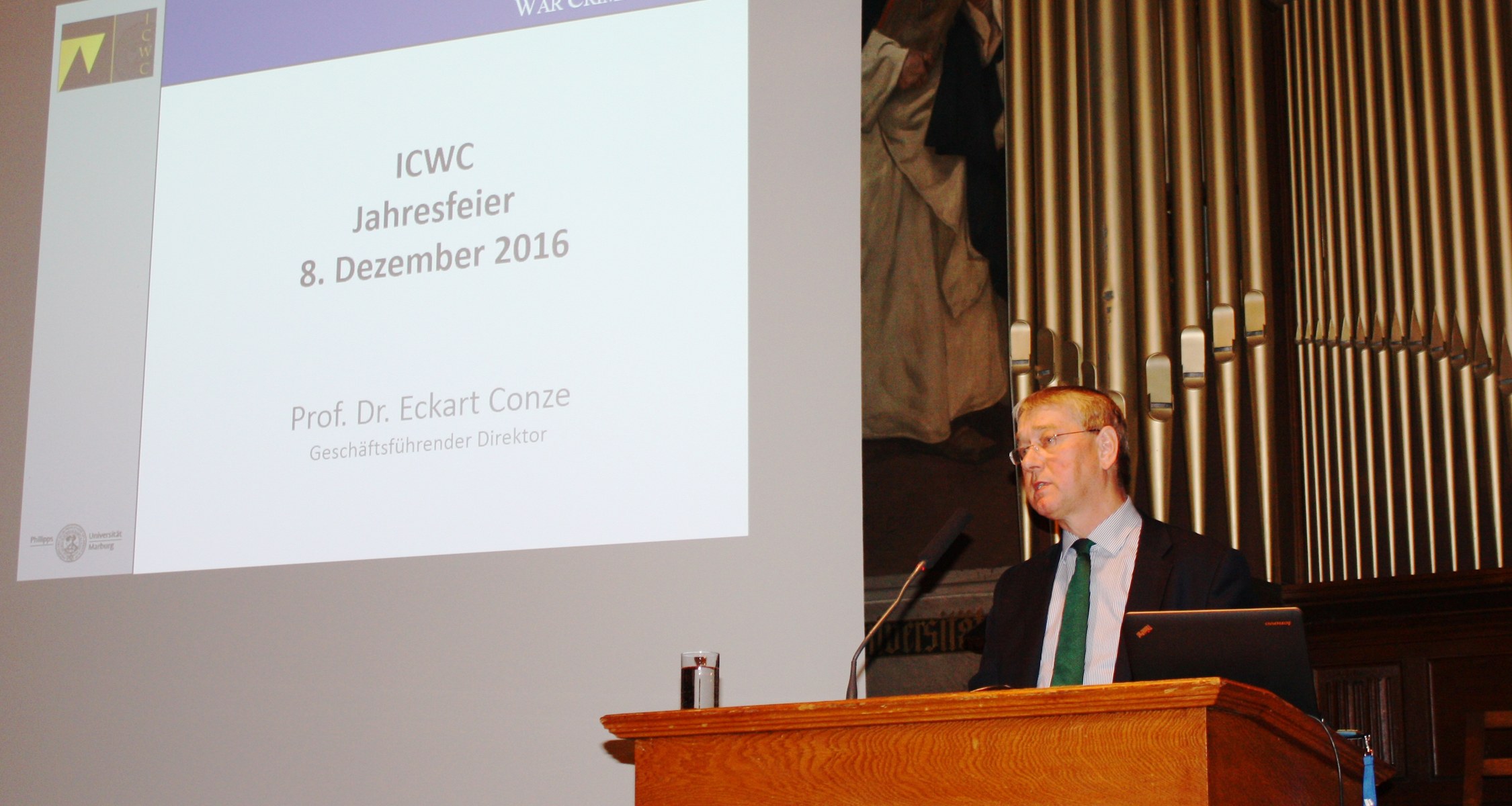 Every year, the ICWC commemorates the occasion of its foundation with an annual celebration and the Marburg Lecture on International Criminal Law, which is always given by a distinguished guest from the area. The most recent celebration took place on 6 December 2018 with Kimberly Prost, judge at the International Criminal Court (ICC) in The Hague, giving a keynote on the “20th Anniversary of the Rome Statute of the International Criminal Court: Achievements and Challenges”. On 5 December 2017, the guest speaker was Bishop Professor Dr. Dr. h. c. Wolfgang Huber who gave a lecture on "The Cultural Dimension of Genocide". On 8 December 2016, we welcomed Professor Dr. Christoph Safferling, LL.M., spokesman of the Independent Scientific Commission on the Review of the Nazi Past at the Federal Ministry of Justice. Previously, on 3 December 2015, Professor Bertram Schmitt, judge at the ICC, was received in Marburg. In 2014, the ICWC had the honour of Professor Andreas Wirsching, director of the Institute of Contemporary History Munich/Berlin, giving a lecture. It took place within the framework of a multi-day international and interdisciplinary scientific conference at the ICWC. Another special highlight was the 2013 annual celebration which marked the 10th anniversary of the Centre and, in addition to the lecture on "The Punitive Power of World Society" held by former Judge at the Federal Constitutional Court Professor Udo di Fabio (Bonn), an interdisciplinary workshop on international criminal law was included. The workshop panels were filled with top-class representatives from science and law practices.