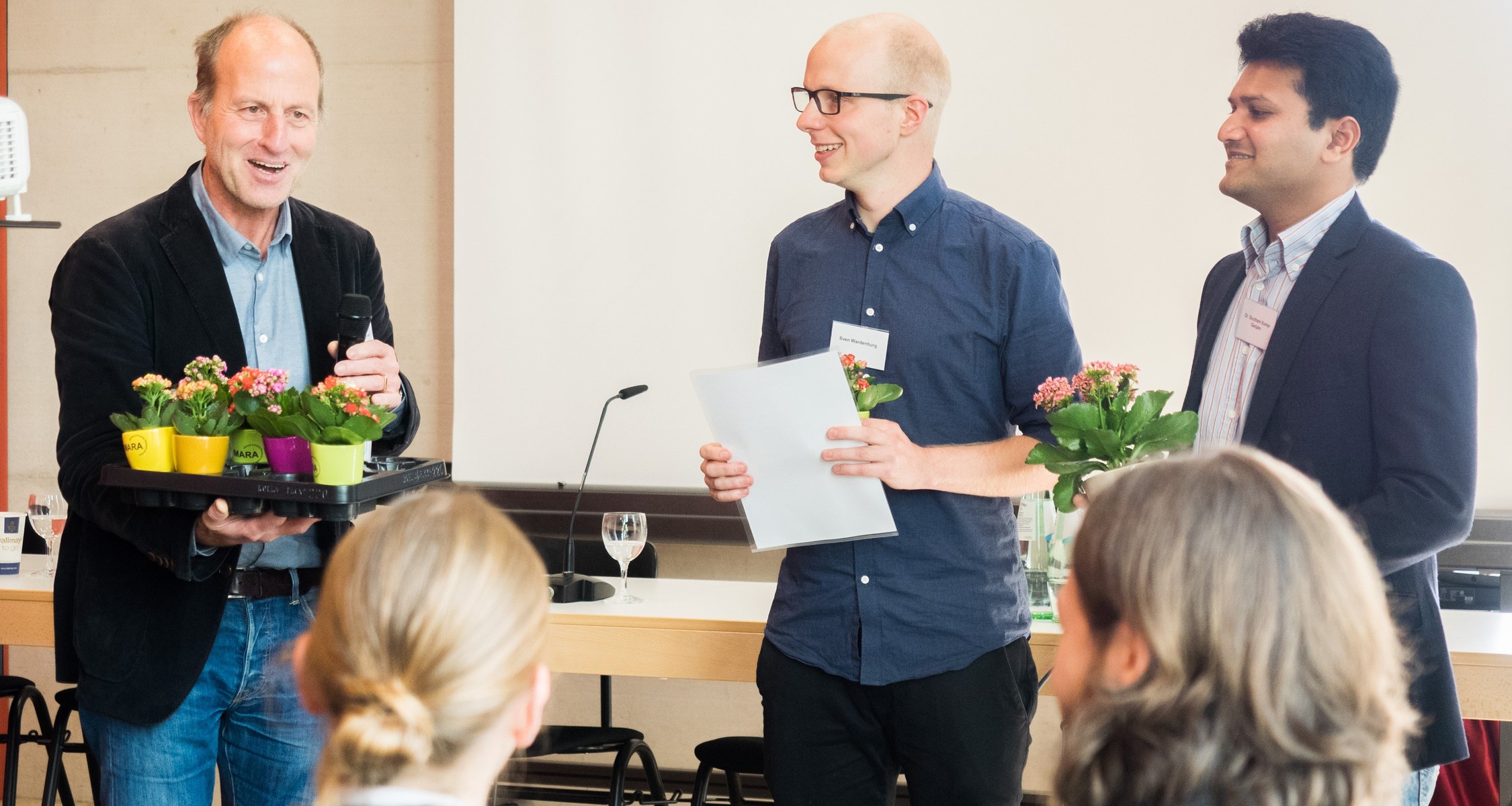 One of the highlights was the MARA contest for the most convincing elevator pitch. According to this format, adopted from MARA DAY, eight doctoral students and postdocs from different disciplines presented their research projects in three minutes each and attempted to convince the audience of the usefulness of their research and its significance for the future. All of the speakers did an excellent job of explaining their, indeed, very complex research questions in a generally comprehensible fashion and roughly within the given timeframe. The audience ultimately even elected two lucky winners: Tied for first place were Sven Wardenburg with his elevator pitch on "Regionale Ungleichheit am Arbeitsmarkt der Zukunft" ("Regional Inequality in the Labor Market of the Future") and Dr. Goutham Kumar Ganjam, who spoke about "Do the Bacteria in Our Gut Control Our Brain?" Each winner was awarded a voucher worth 100 EUR toward MARA continuing education offerings.