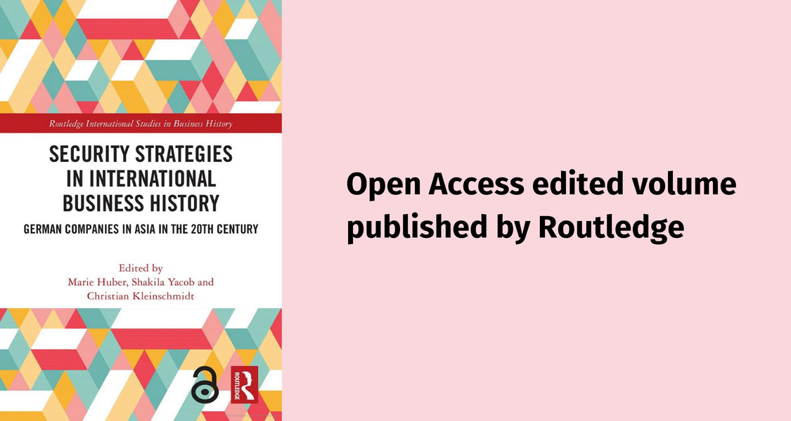 The edited volume Security Strategies in International Business History. German Companies in Asia in the 20th Century, published by Marie Huber, Shakila Yacob, and Christian Kleinschmidt, examines how German companies in the 20th century responded to security-related challenges in Asia and what strategies they developed to stabilize their business activities in politically, economically, and socially volatile contexts. The case studies range from the late 19th to the late 20th century and shed light on German corporate practices in Japan, China, India, Malaysia, and Southeast Asia.