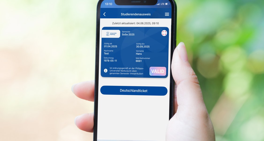 The student ID card certifies your membership as a student at the University of Marburg. You will need it, for example, when applying for the Ucard, which you can use to pay at the canteen checkouts and borrow books from the university library. You will receive your student ID card in digital form after enrolment or re-registration  via the University of Marburg app.