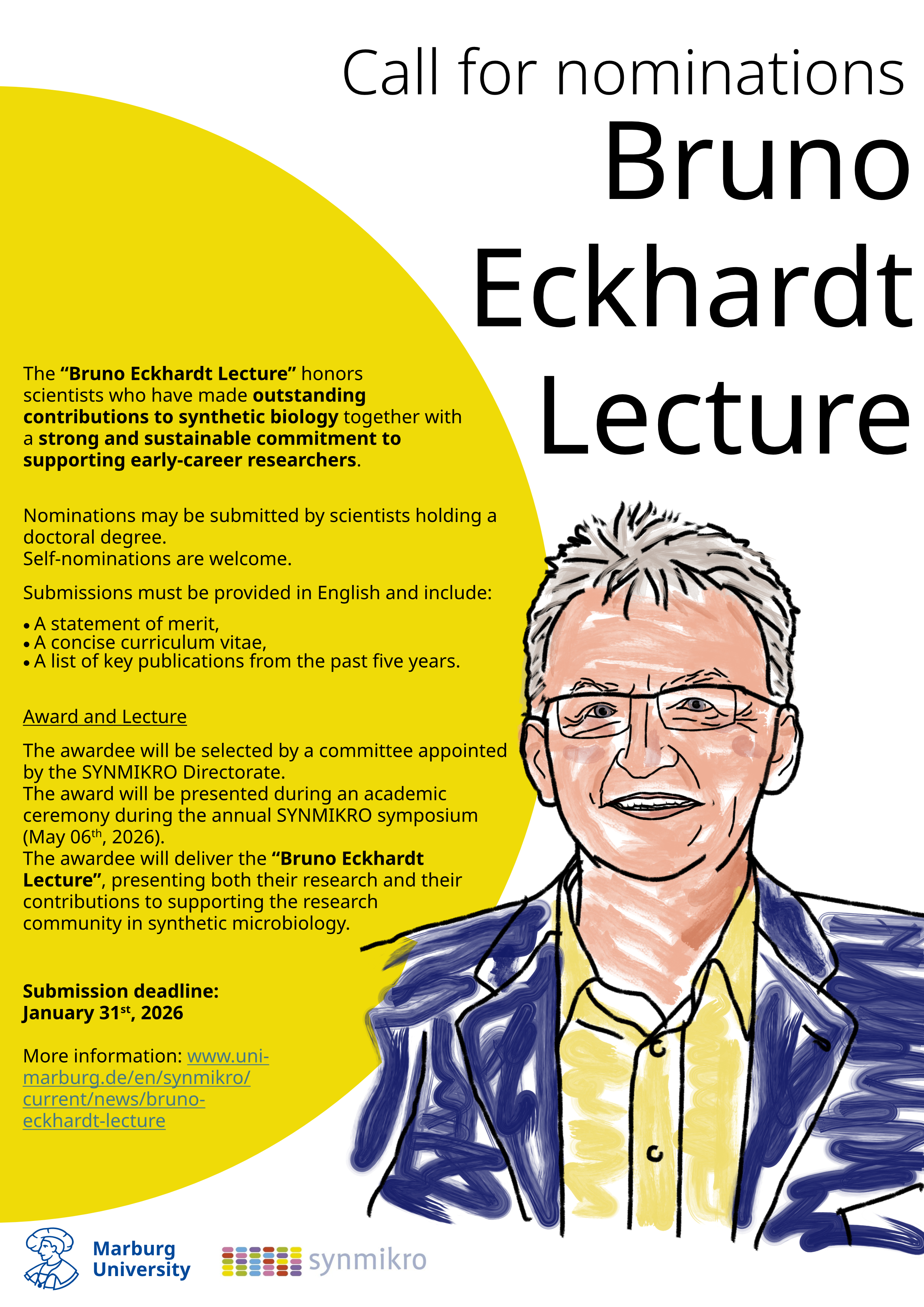 The awardee will deliver the “Bruno Eckhardt Lecture”, presenting both their research and their contributions to supporting the research community in synthetic microbiology.
