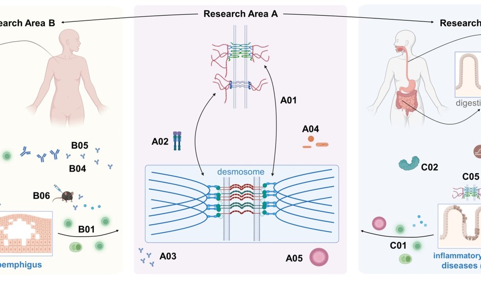 Three thematically related subject areas interconnecting the function of desmosomes. -