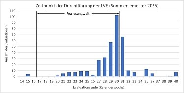 • Graphic on portal usage: Self-selected timing of teaching evaluation in the 2025 summer semester